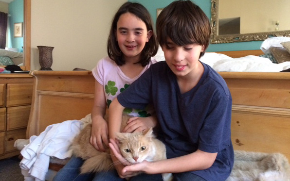 Two San Carlos children were thrilled to come home from school Monday and find their missing cat greeting them.