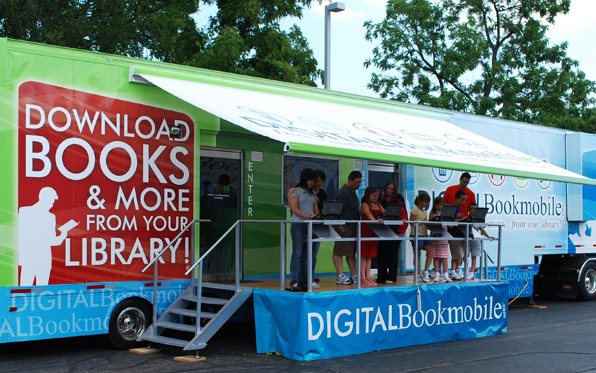 A digital bookmobile, housed inside an 18-wheel tractor trailer, will be rolling into both the Poway Library and the County Operations Center next week to help out any residents looking to learn how to fill their e-reader with free books. The 74-foot vehicle is operated by OverDrive and teaming with the San Diego County Library to bring one-on-one assistance from library staff to readers.