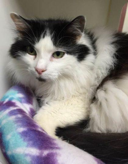 Gigi is an absolute classic, from her looks to her age. She’s 11 years old and wants no more than someone to cuddle and a place to call home. This elegant cat is very mellow and serene. She wouldn’t mind in the least if you pet her while you’re both lounging about the house.