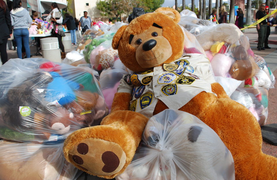 Local law enforcement officers converged on Rady Children’s Hospital Tuesday morning to take part in a special operation: the delivery of thousands of donated stuffed bears to patients.