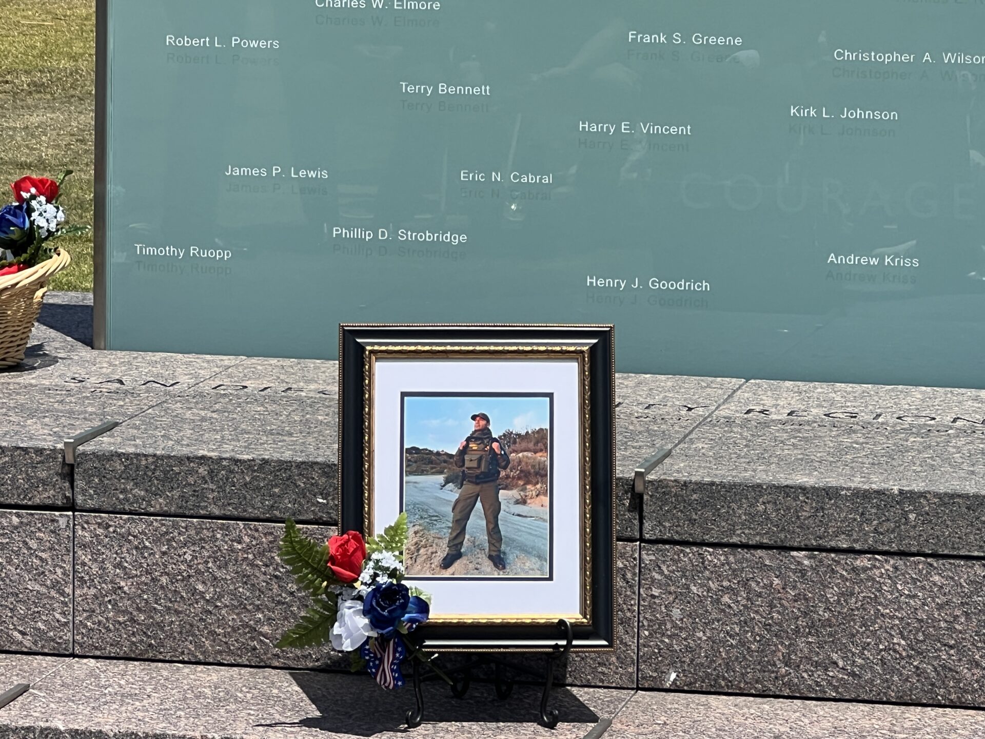 This year, two names were added to the memorial glass wall outside of the County Administration Center; U.S. Border Patrol Agent Daniel H. Salazar and State Park Ranger George Kowatch III.